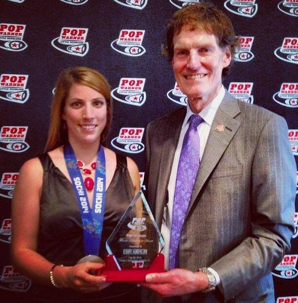 “Such an honor receiving the Pop Warner Female Achievement Award tonight! Thank you so much & congrats to all the athlete scholars! #PWAwards” -Erin Hamlin