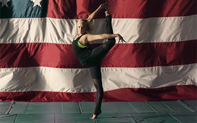 In “Miss Incredible” we see Liukin pull off a double back handspring step-out, after showing off her impressive five Olympic medals (which she keeps at her parents’ house in Dallas). Picking them up, she said, before the video shoot was almost as difficult as dusting off her old mat skills. “It was a little bit of a process,” she remembered. “I had to fly from New York City to Dallas to get my medals, then to LA the next day,” where the shoot took place. Since it was filmed in a studio, Liukin said “there was limited space and mats, so there was only so much I could do.”