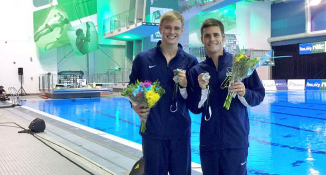David Boudia (Noblesville, Ind./West Lafayette, Ind.) and Steele Johnson (Carmel, Ind./West Lafayette, Ind.) won the silver medal in synchronized 10-meter Friday at the FINA Diving World Series in Windsor, Ontario.